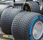 Заметили отсутствие дренажных канавок, грунтозацепов и ламелей? Тут много резины, поэтому площадь контакта покрышки с дорогой максимальна. Но при любом малейшем дожде авто на таких шинах вылетают с дороги, если не успели вовремя заехать на пит-стоп и переобуться в дождевую резину.