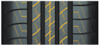 Размещение в дизайне резины блочных сегментов с переменным шагом еще больше способствует обеспечению гармоничной атмосферы внутри автомобиля, делая передвижение на машине особенно комфортным. Кроме того, шина демонстрирует минимальный уровень шума благодаря эффективному снижению резонанса воздушного потока в водоотводящих каналах.