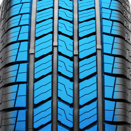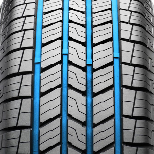 Наличие четырёх широких продольных траншей позволяет быстро разрушать водную пленку и предупреждать риск аквапланирования. Влага и грязь быстро выводятся из зоны контакта, что позволяет сохранять плотный контакт на мокром покрытии и предотвращает потерю контроля. Благодаря этому покрышка подходит для эксплуатации в регионах с переменчивыми климатическими условиями, обеспечивая уверенное вождение в дождливую погоду и в межсезонье.